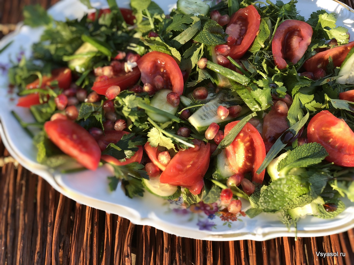 Грузинский салат с грецкими орехами, помидорами и огурцами