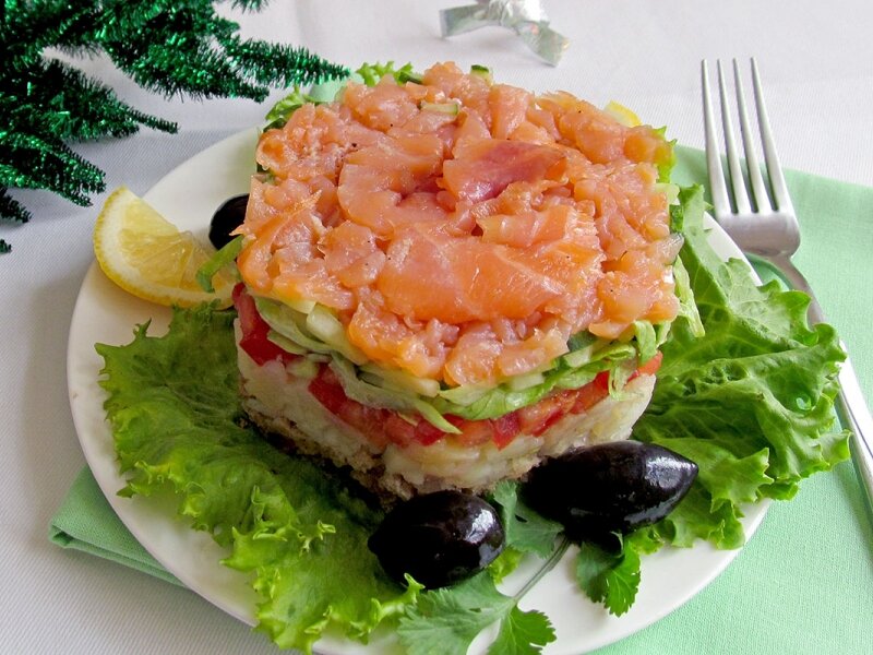 Слоеные салаты пользуются большой популярностью, их готовят и в будни, и для праздничного стола. Для их приготовления используют самые разные продукты; мясо и рыба очень удачно сочетаются в таких салатах с овощами, грибами и т. д., и чем больше фантазии проявляет хозяйка, тем более оригинальные и изысканные блюда у нее получаются. У нас — 9 лучших рецептов слоеных салатов к Празднику!!!!