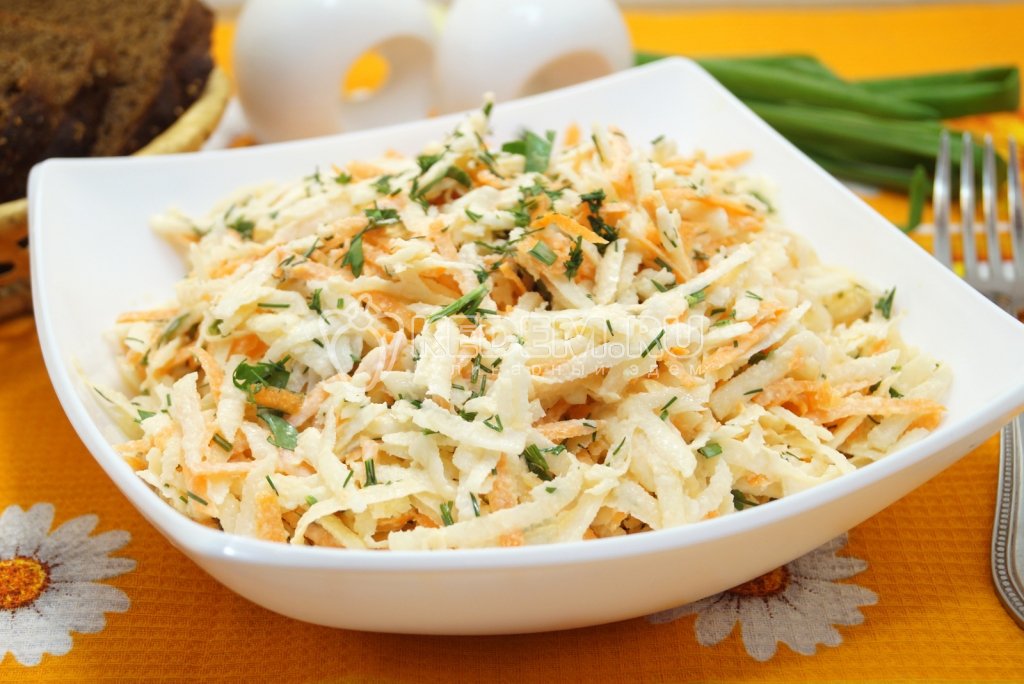 Картофельный салат из черной редьки, яиц, яблок и овощей рецепт с фото пошагово и видео