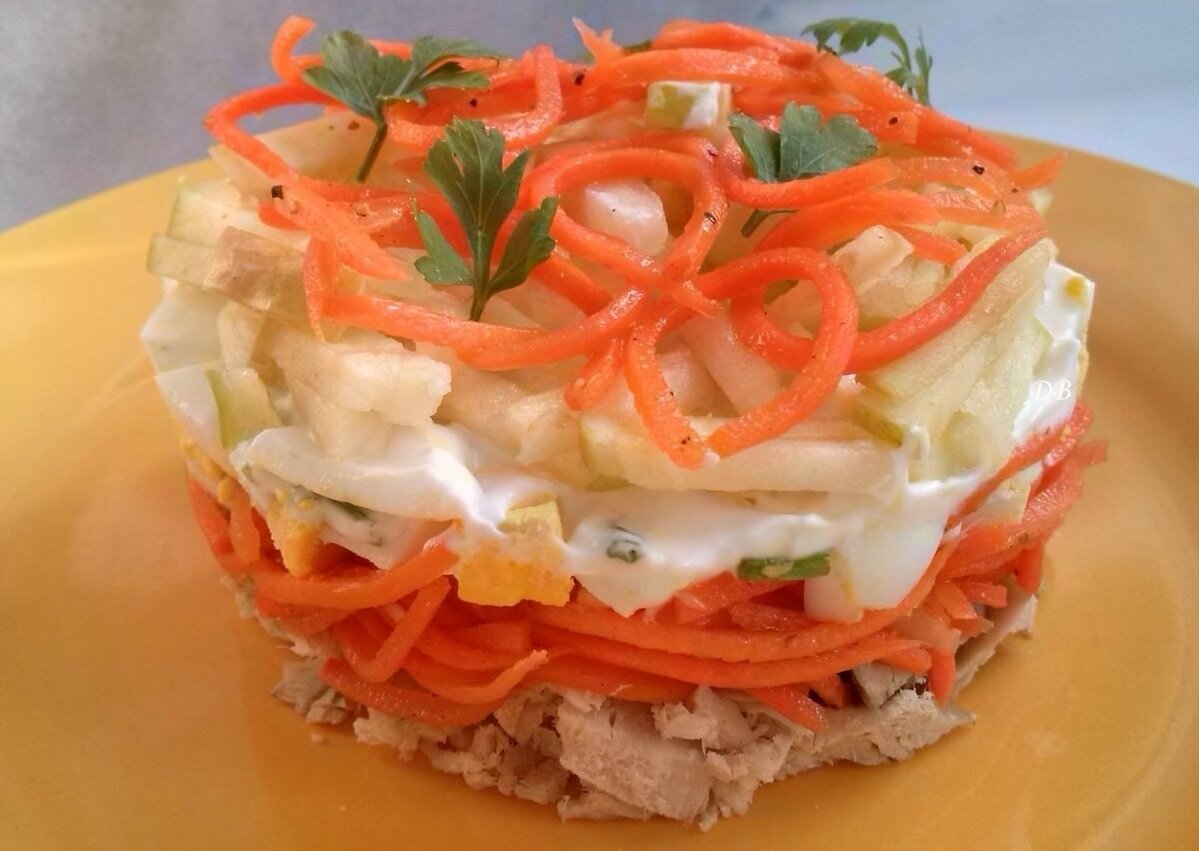 Салат с куриным мясом с фото | Рецепт салата с куриным мясом и корейской морковкой