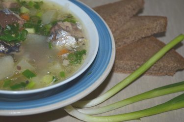 Суп приготовленный из рыбных консервов с картофелем и рисом