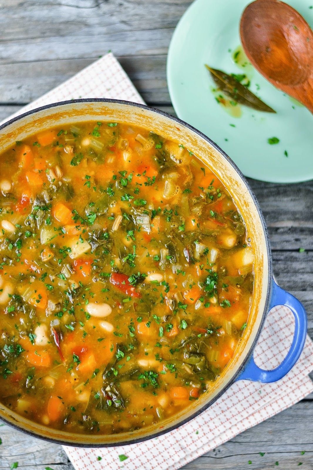 Этот домашний овощной суп является полезным и сытным продуктом в холодную погоду. Я люблю подавать его с хрустящей корочкой хлеба без замеса или кренделя, а также посыпать домашними гренками для успокаивающей зимней трапезы!