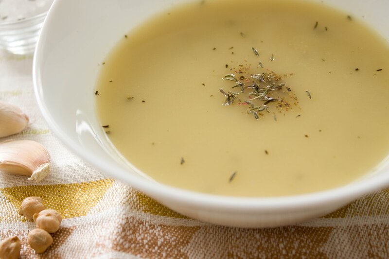 Супчик готов. Подавала с гренками, обжаренными в чесночном масле. Чтобы приготовить чесночное масло надо зубки чеснока размять плоской стороной лезвия ножа, обжарить до золотистости в растительном масле, затем удалить чеснок — масло готово.